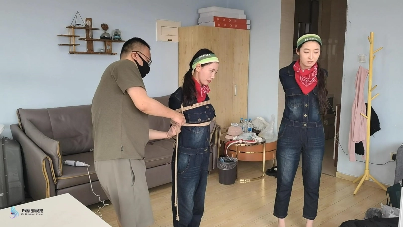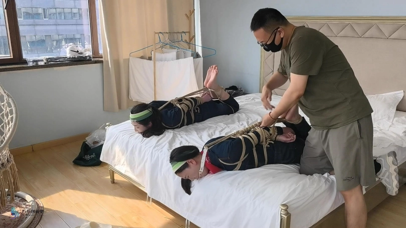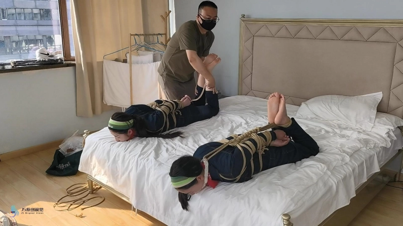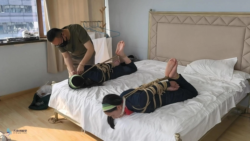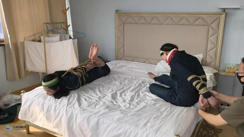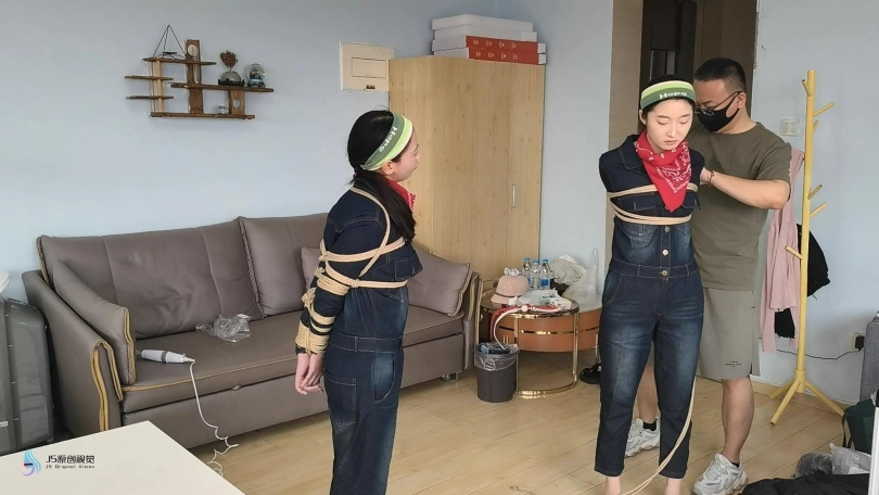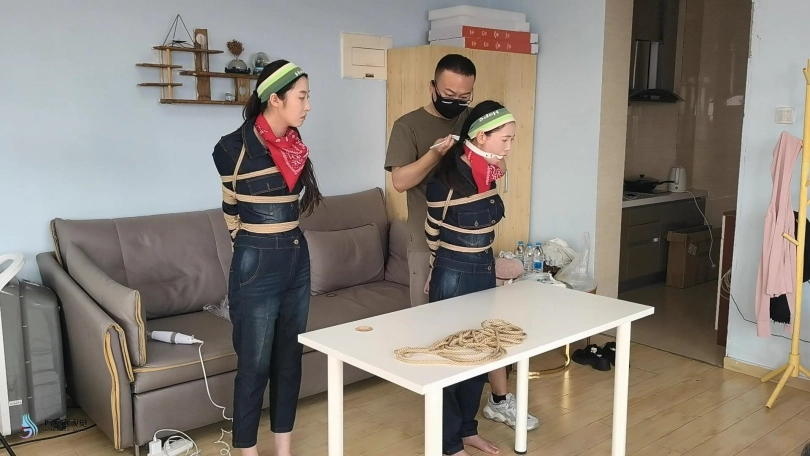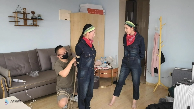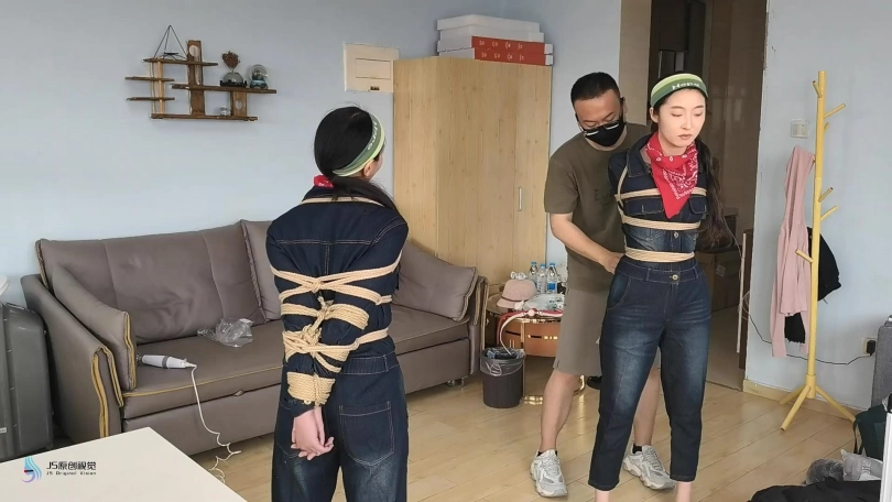 【JS】【宫怡】【欣妍】双女牛仔超紧直臂驷马口球堵嘴裸足放置