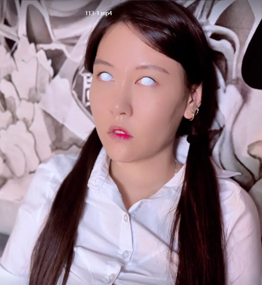 带上白色全遮隐形眼镜,用丝袜脚触摸道具,