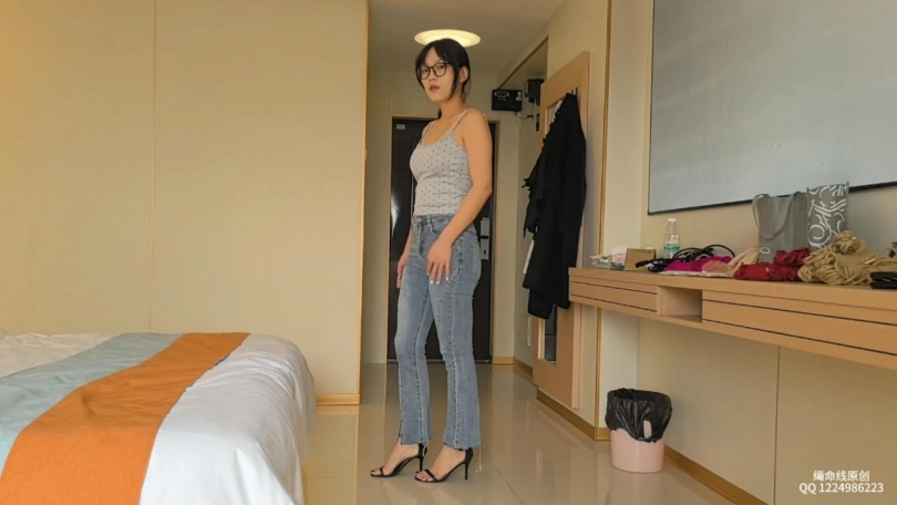 今天的小白格外美丽,吊带背心加牛仔裤,配上一字带高跟鞋真是绝了,马上给她绑上日式加股绳,戴上水晶口球驷马趴在床上的感觉真是绝美,口水流下来的瞬间直接起反应哈哈哈!