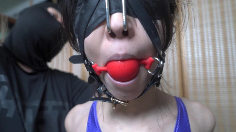 嗷嗷为了获救,于是听从安排,穿上泳衣,戴上马具口球和鼻钩