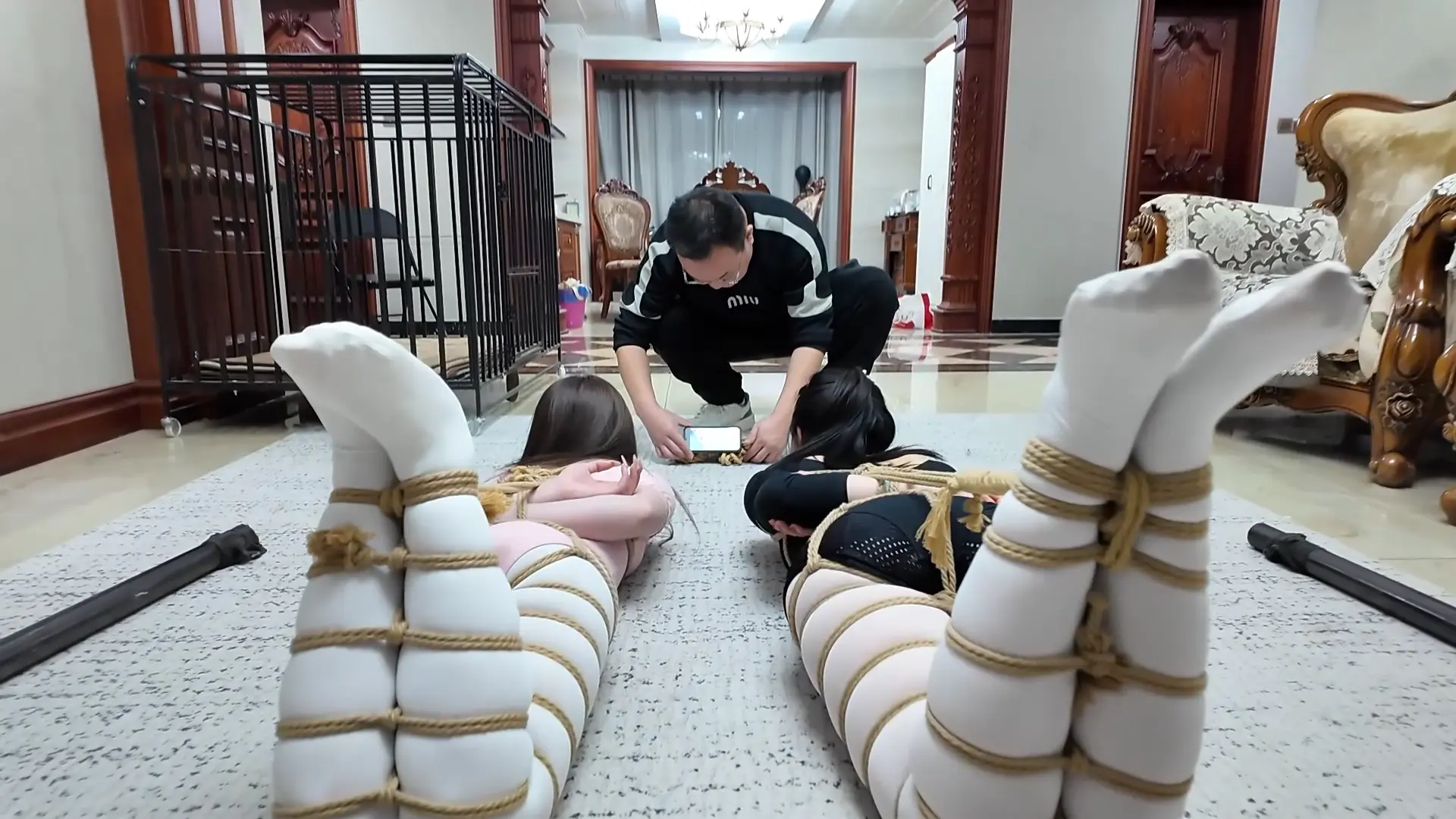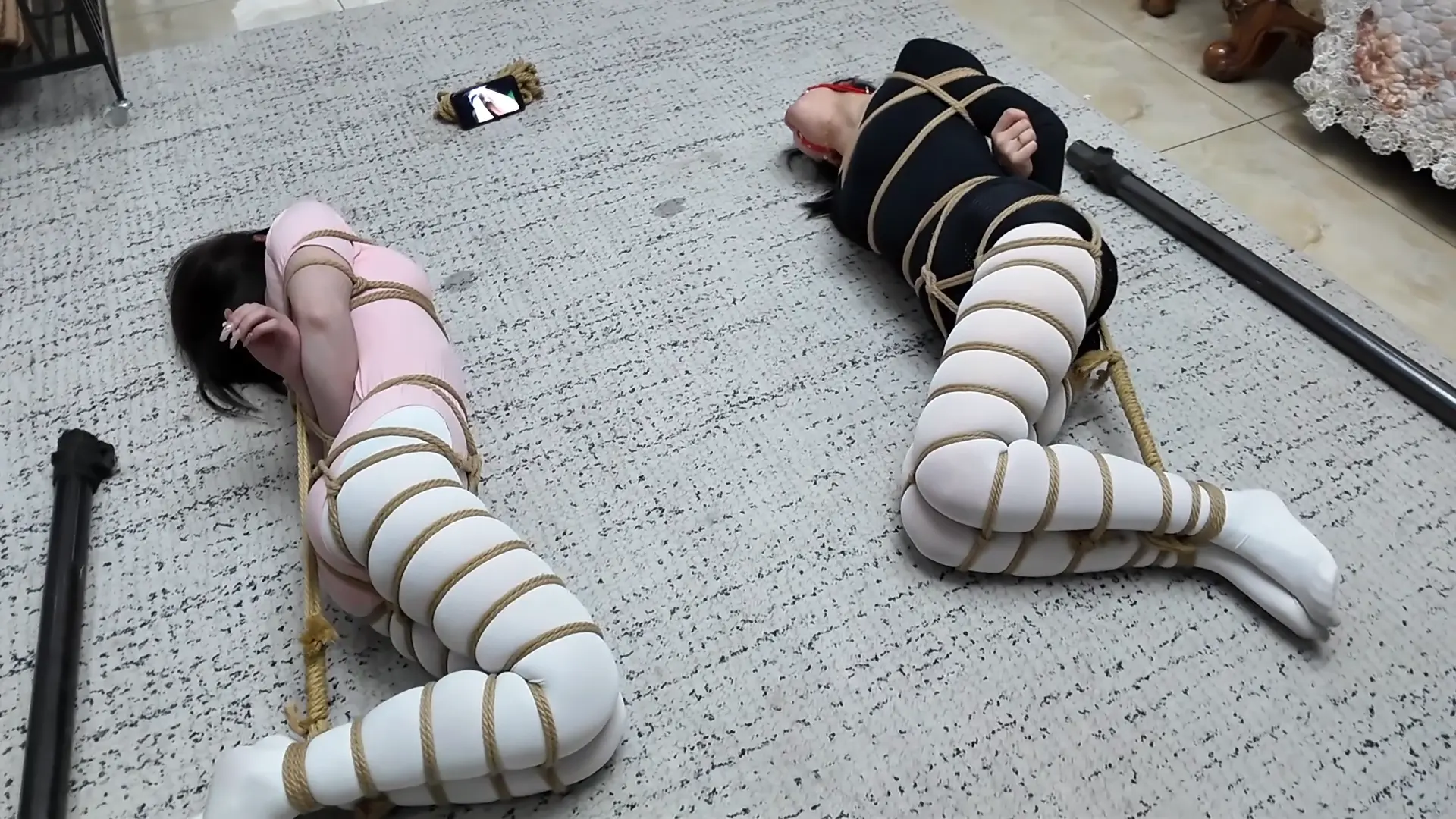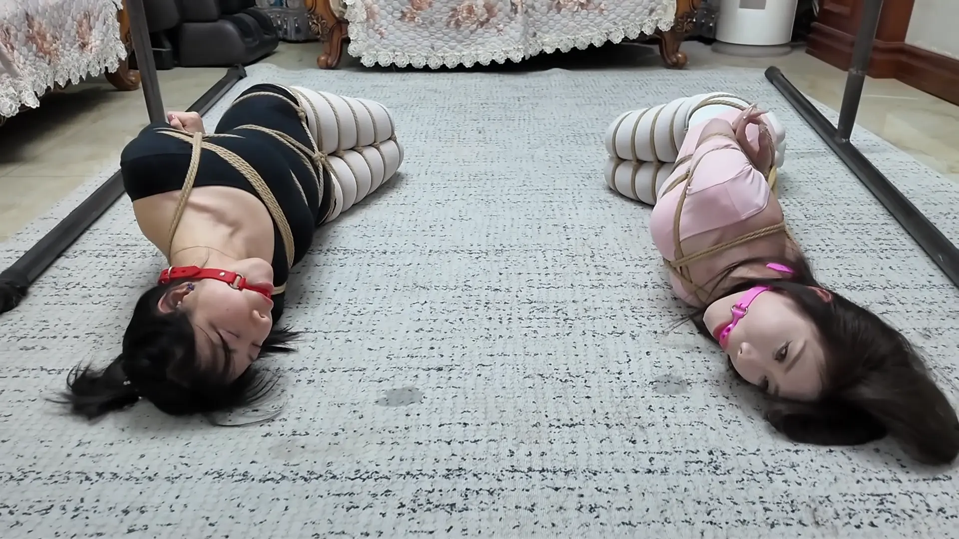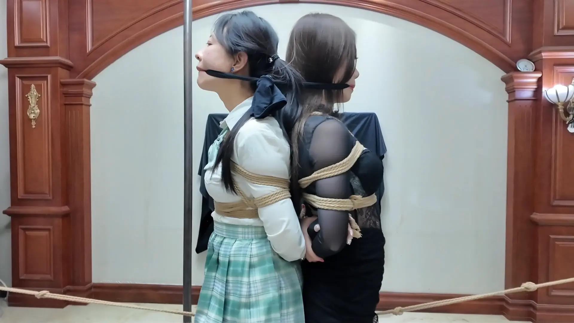 美女母女通过绳屋老板的设计才知道彼此都是同好,老板提议不如留下来深入交流一下,训练母女彼此的默契,并分别设计了一些有趣的项目包括1.同时吃一种食物 2.蛇缚舞蹈 3.走绳训练 4.驷马放置观看绳艺教学 通过训练,米粒和芷溪的关系得到明显改善,变的如胶似漆,酷似胡子哥的老板居然做了一件大好事,母女俩都非常感谢。娘俩心满意足的谢了老板以后就回家进一步“交流”去了。 这次的剧本算是我比较满意的,内容比较多拍的比较辛苦,感谢两位美女模特的敬业精神,也感谢枫叶老板,各位有复杂的剧情剧本尽管找枫叶安排,相信会拍出让自己满意的佳作。