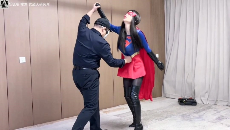 醒来被捆绑,靴子被脱,敌人玩弄腿和脚、揉腹摸臀,她嘴硬反抗却渐渐呻吟昏厥。敌人放下她,连续踢腹,踩踏碾腹部,女超人被折磨口水直流哀嚎不已。她躺在地上勉强用热视线击退敌人,敌人毫发无伤仍拖拽踢腹、踩腿、熊抱勒腰。女超人被放下时,肘击挣脱试图飞行逃走,被拽住披风摔倒。敌人用披风勒颈、摸臀部,她痛苦到四肢无力、口水狂涌再次昏厥。敌人接电话扔下小绿石离开。