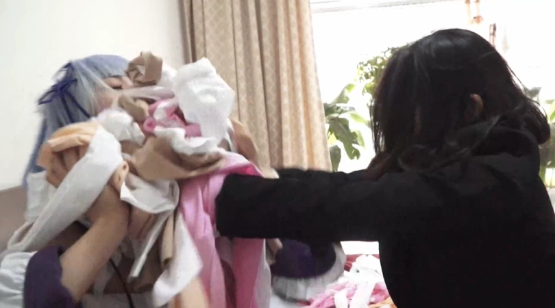 【逍遥】Cosplay拉姆雷姆之[雷姆的陷阱 - 上]雷姆用数十条丝袜设计捂晕绑架了另一个姑娘,并强迫她接受她拉姆的角色。不屈服的拉姆被迫接受捆绑,窒息捂,乃至强吻亲脚的惩罚