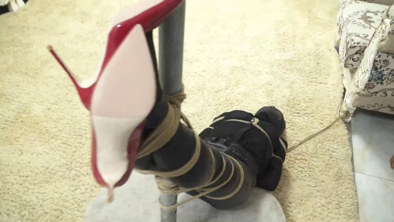 王蕾是一位女贼,四处作案,尤其喜欢偷好看的鞋子。这一次却不小心偷到了一位女老板的头上。虽然只取走了一些钱财和几双高跟鞋,可女老板却非常生气,她雇佣杀手惩罚这个女贼。杀手很快找上门来,绑住了王蕾。狡猾的王蕾声称希望试一试偷来的鞋,想寻找机会逃跑,不过被紧紧绑住的她怎么可能逃掉?杀手将她的双腿绑在柱子上,脖子上的绳套连着沙发腿。王蕾一动也不能动,插翅难飞......