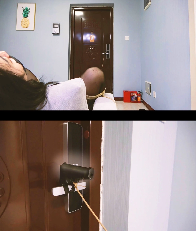 黑丝美女情趣服在地上捆绑逃跑,被发现一番玩弄,美女醒来被捆绑在特殊机关上,只要有人打开大门就会启动机关用枪打中,究竟美女半能不能逃出生天呢?