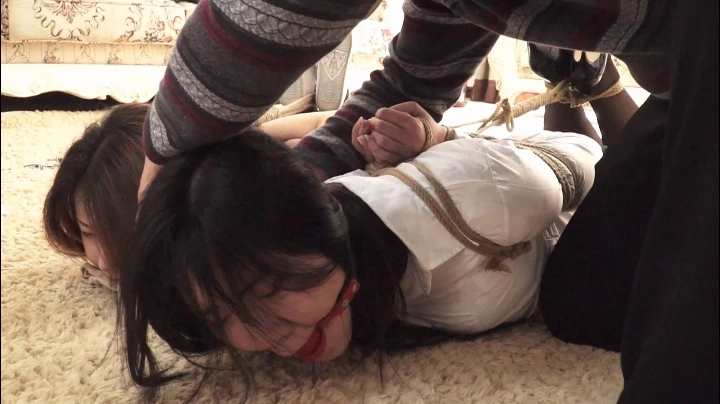 男人将师生驷马捆绑,联系买主。师生挣扎。等待买主到达。
