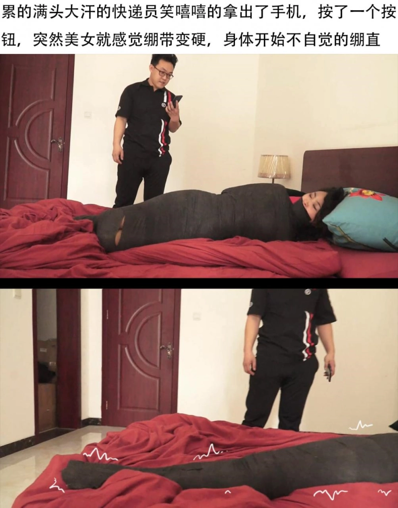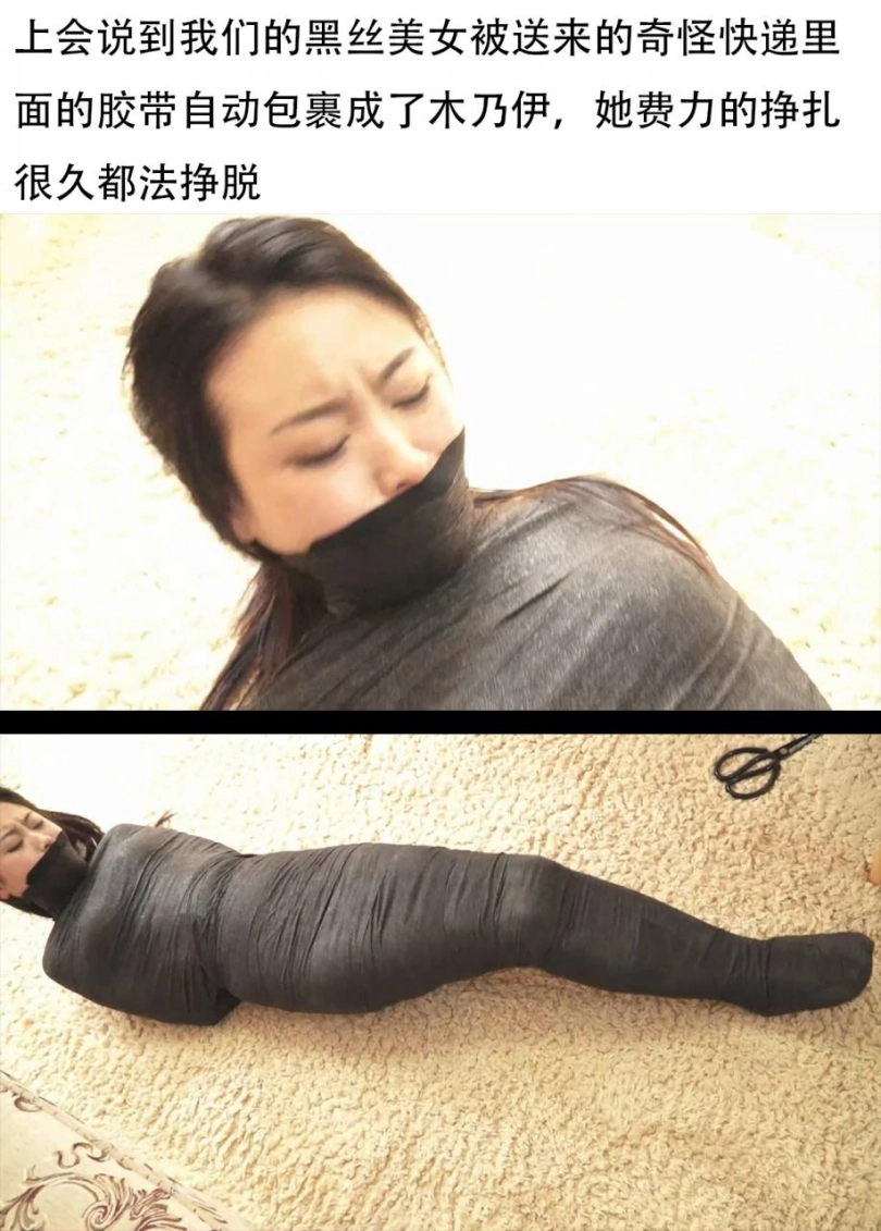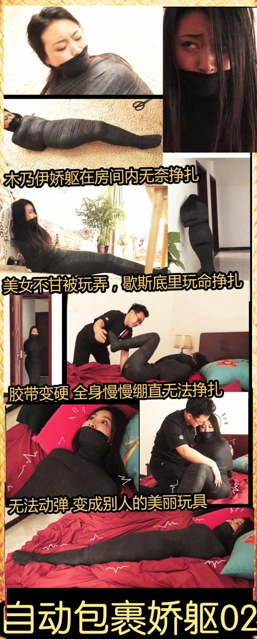 【逍遥】《自动包裹娇躯02》全包木乃伊美女玩命挣扎 木乃伊挣扎跳跃 被定身控制无奈呻吟