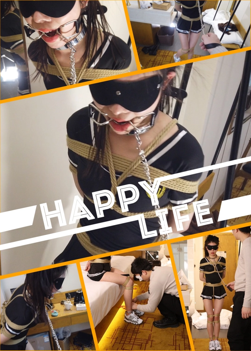 这身黑色的运动装扮在加上紧缚的绳索和超短的脚镣和开口器。啧啧!
