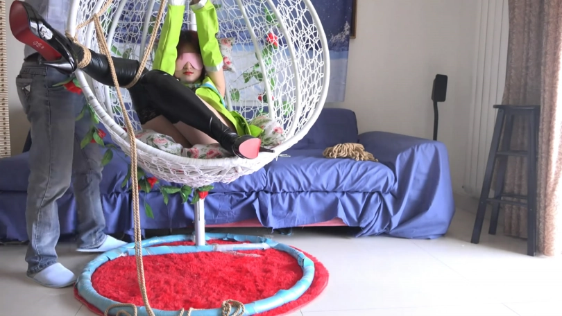 当傲娇的大小姐,只能被拘束在吊椅上,蒙上眼睛,楚楚可怜地接受着TK的过程。