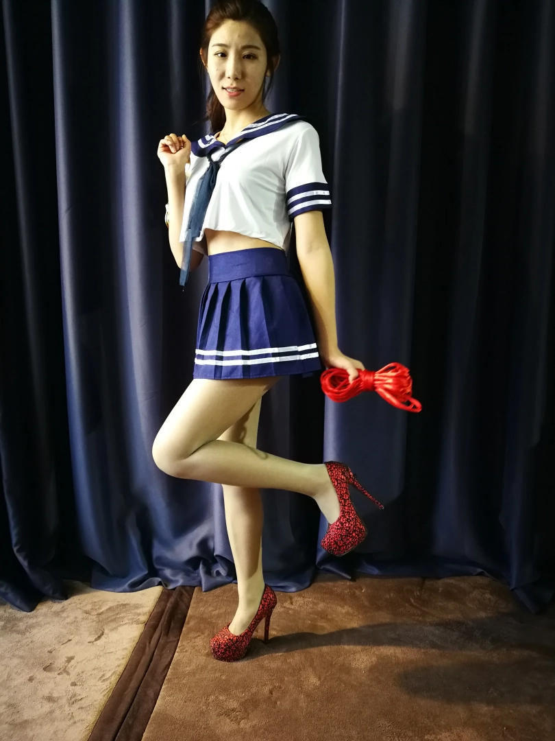 男主给女主松绑,让女主换上学生装,换上假高筒袜,换丝袜过程特写2分钟,裙子要超短超短几乎遮不住那种。然后给女主口中塞入丝袜并且胶布封嘴,绑上龟甲缚,用日式捆缚捆绑双手,加上股绳,然后将女主捆成开腿缚,露出内裤丝袜,然后此时男主说出真相
