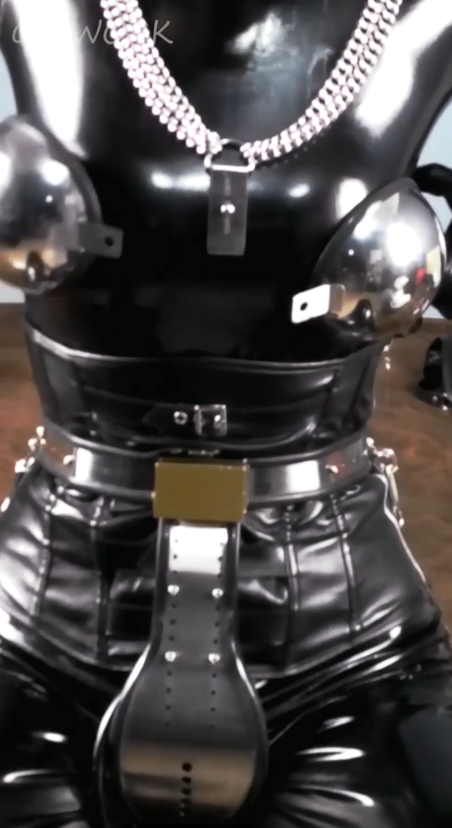 【时间煮雨美束论坛】《妄想奴隶2》伪娘、紧身衣、贞操带、金属乳操衣、双重肛塞、防毒面具、单手套全包自我奴役调教