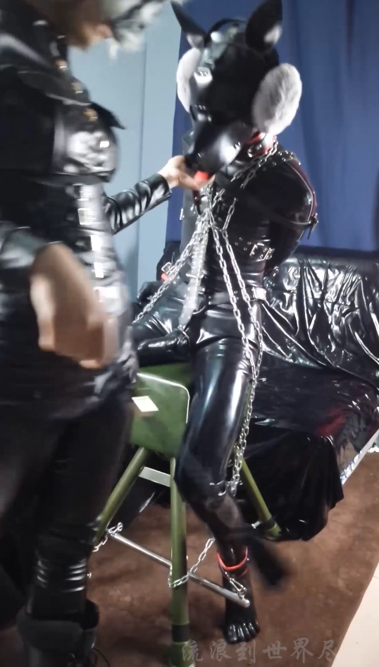 经过两次对闺蜜的捆绑调教,她渐渐开始觉得这种游戏越来越有意思,因为她之前没有去玩过这种类型的游戏。但这一次,她想让我彻底当一回她的小奴隶,让她尝试一下当女王的感觉。想想我似乎还没去体验过让女孩子来调教自己,想必应该有新的体验吧。就这样,我穿上了乳胶衣,戴上了有鼻管和牙套的乳胶面具,再加上手铐与脚铐等各种捆绑,我现在整一个人的造型......还是比较符合女孩子的审美,看来她不太喜欢我戴防毒面具的样子,最后换成了狗头套,这造型还真成了她的小宠物了,在她那细柔的皮鞭调教下,我有点小兴奋了,再加上她之前事先给我在后庭里放入硕大的肛塞,在皮带衣的紧绷下,肛塞被牢牢扣住,一直使得我下体无比难受,身体实在是颤抖得不行,但眼睛被遮挡住了,乳胶手套使我触感降低不好将其解除,只好任由小主人的摆布了,甚至因此而达到了兴奋点......