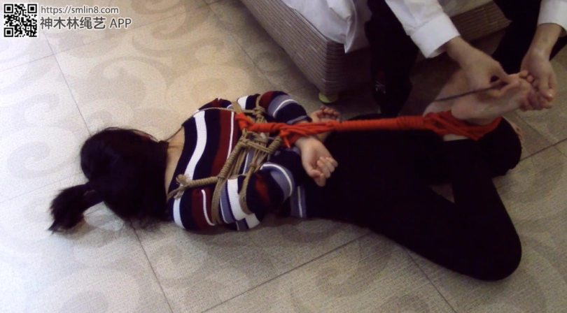 向紧缚实验室致敬,测试女孩在被绑状态下的移动能力。