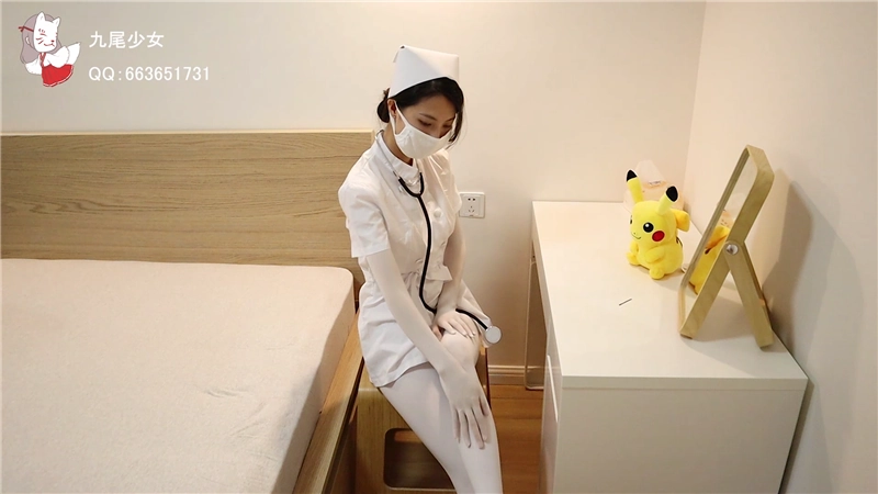 【九尾少女】纯白小护士,白丝+白色丝袜手套的甜美小护士,若隐若现的小内内,被全身捆绑,绷带蒙眼,紧缚跳蛋TJ,白丝脚TK,鞭打挠痒,跳蛋不断震动!高潮呻吟喘息,最后挣扎脱缚~~!