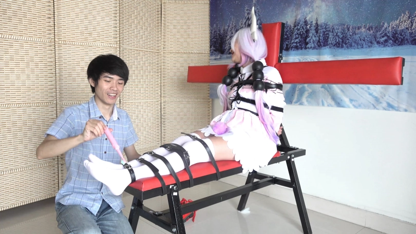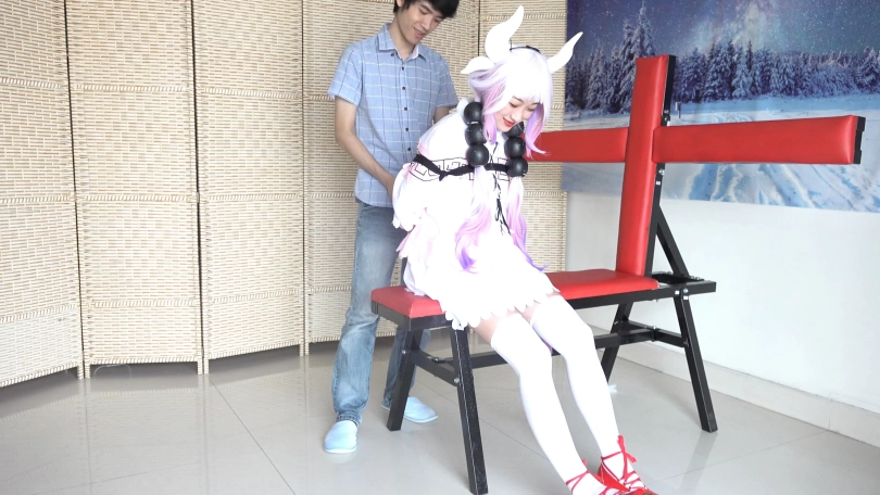 【逍遥】【cosplay TK】龙女仆康纳 白丝老虎凳,眼罩,口球,震动牙刷Tk 妹子被Tk的快哭了