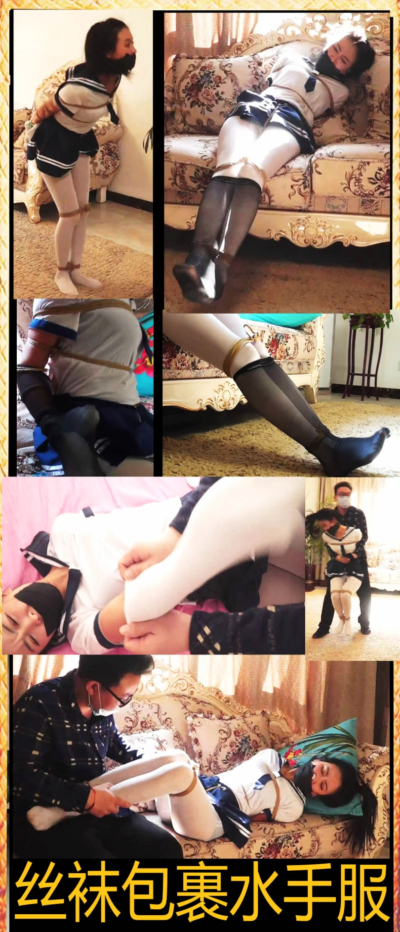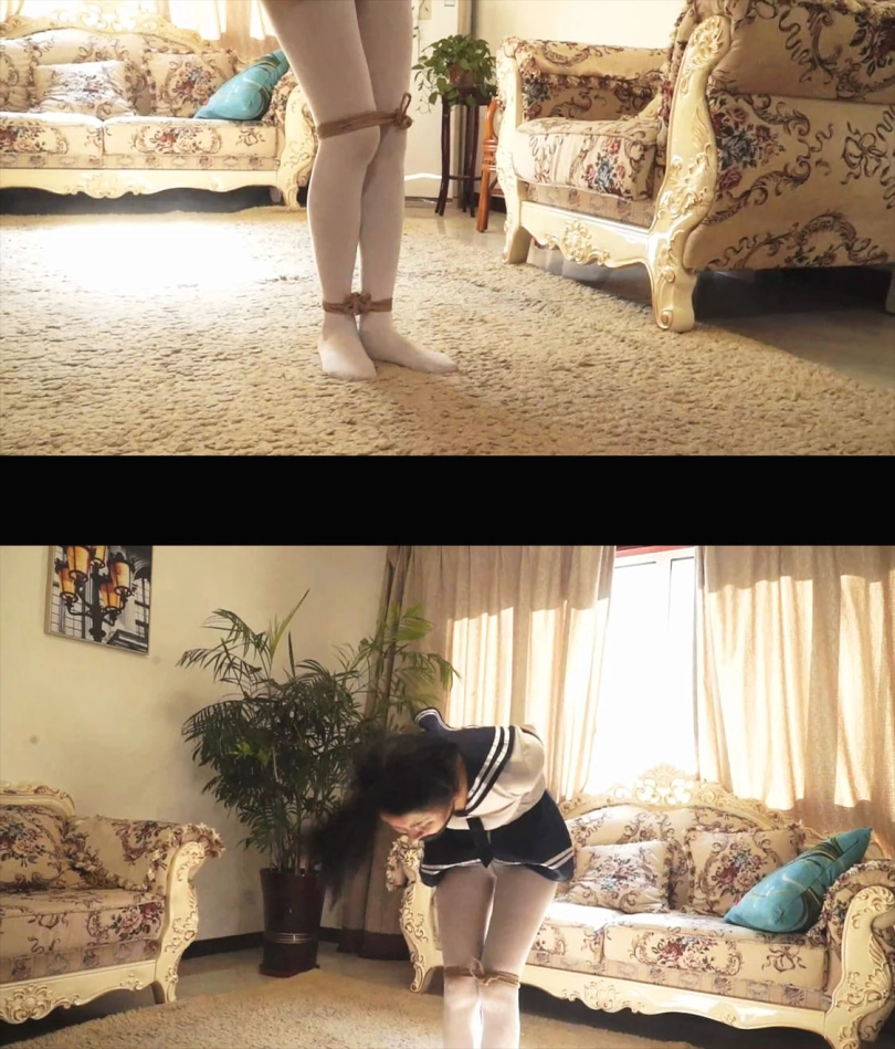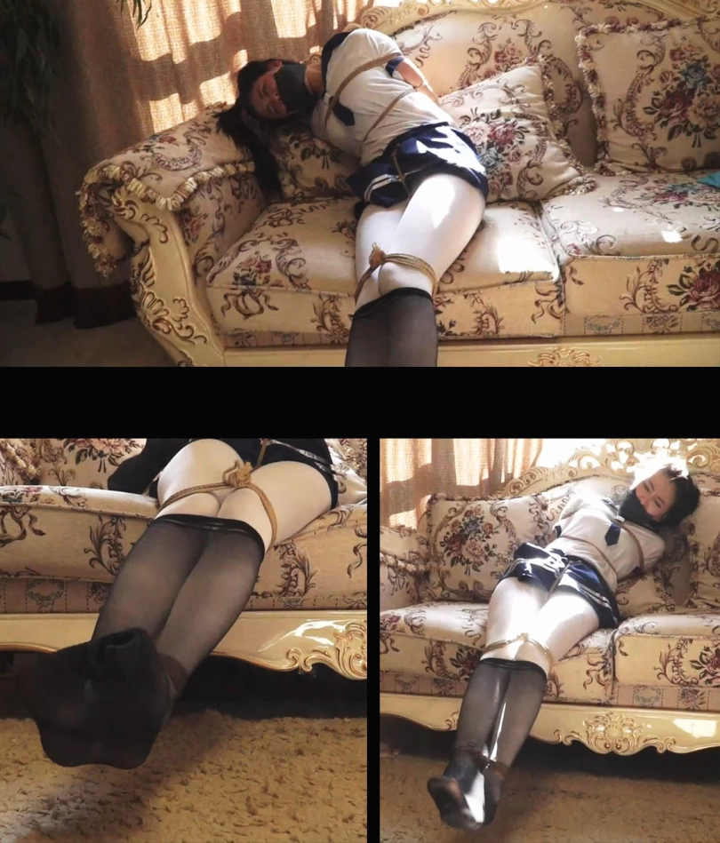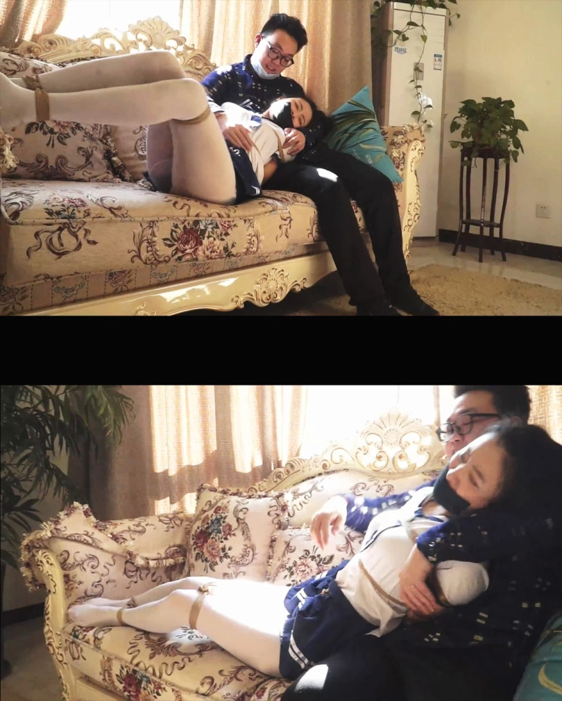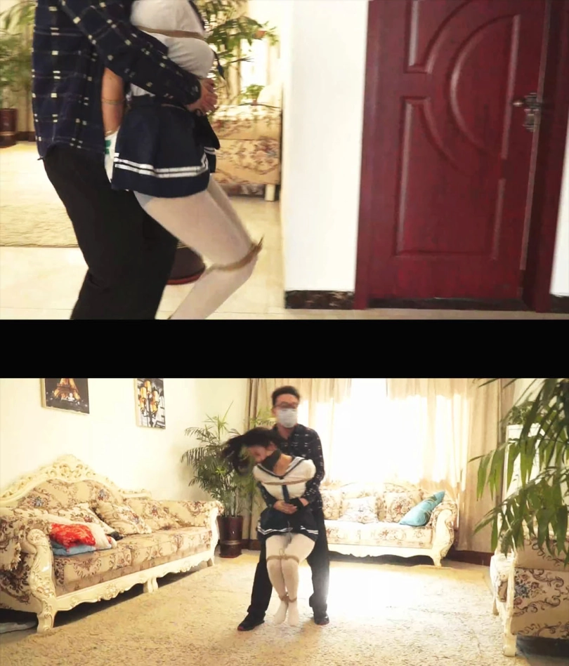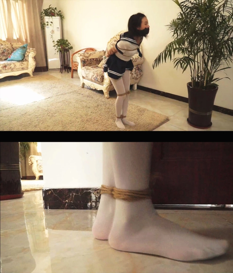 水手服美女被突然抓住,拖进了房间,美女被男人拖鞋厚棉袜套在手上,丝袜塞嘴多层胶带交错封死。白丝美女被捆绑囚禁玩弄娇躯,挠痒丝袜美脚,逃跑被发现有被长筒袜把手脚都套上,多层包裹捆绑让美女完全没有逃走的机会。
