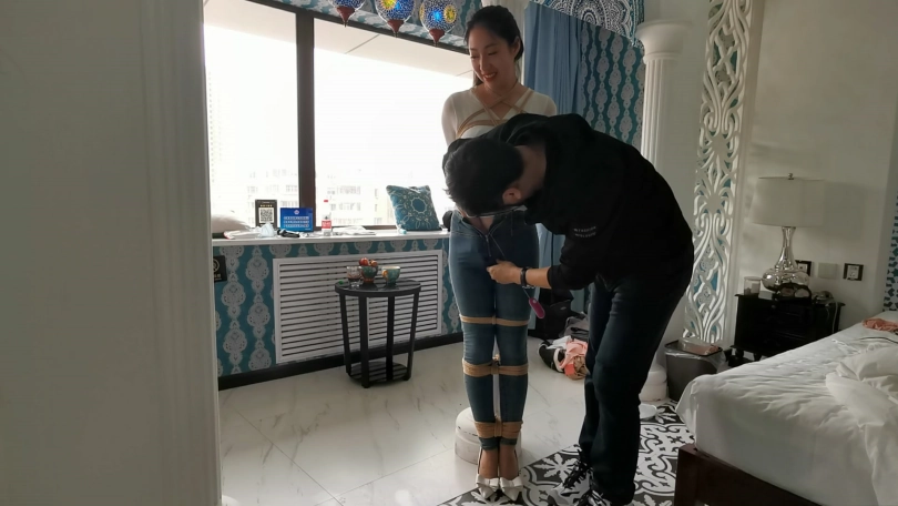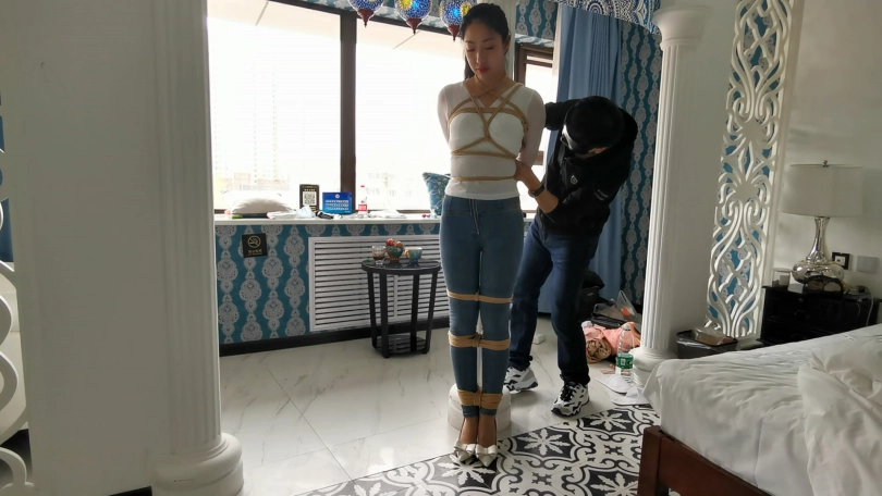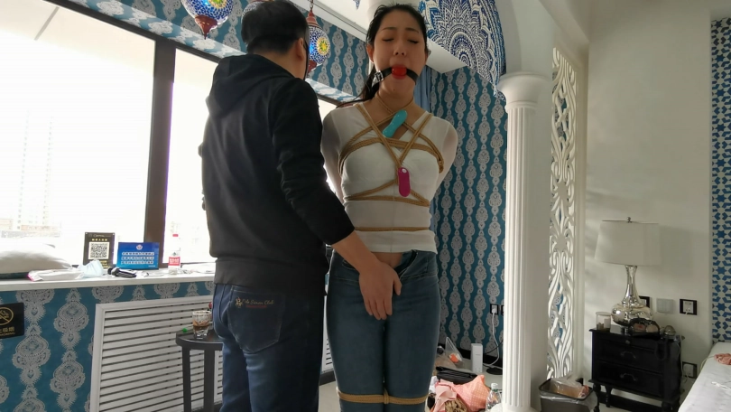 【JS】柱子缚 紧身牛仔裤 口球 挠痒挑逗
