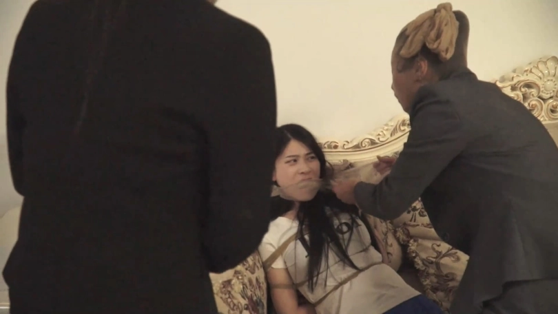 【逍遥】入室抢劫01白丝妹子在家遭遇两丝袜套头女劫匪入室抢劫,迷晕,原味堵嘴,驷马放置