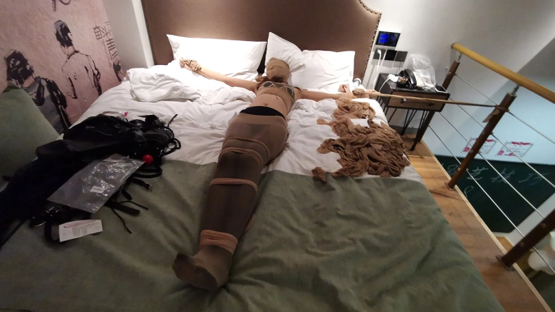 入住了一家连锁酒店,前台工作人员说,现在办理VIP会有惊喜,好奇心下办理了VIP。进入房间后看到床上有个全身被丝袜套着捆绑的女孩在床上挣扎,头上也被套着丝袜,眼睛嘴巴都被丝袜蒙堵着,旁边还有好多玩具,原来这就是VIP的惊喜待遇,正好无聊那就玩玩吧。拿起旁边的ZD棒开始刺激她。女孩被突然袭来的快感刺激到变声,由被堵着嘴发出的呜呜声变成俏魂的呻吟声,玩弄了一会睡意袭来,就这样伴随她[不可描述]被强制刺激所发出的呻吟声中睡去。第二天退房时,果断升级了自己的VIP,希望下次入住会有更多的惊喜体验。。。