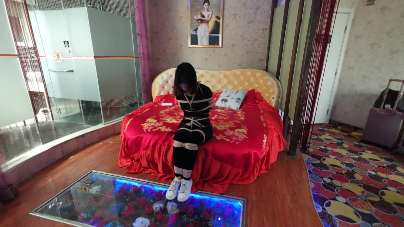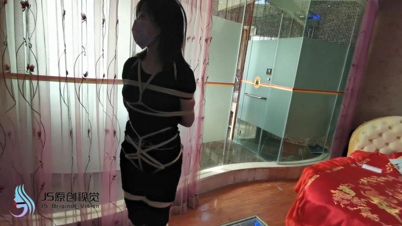 新人凌熙,疫情期间无聊,过来体验捆绑。身体柔韧度还不错,第一次面对镜头就很放得开,绑上之后还挺开心,在镜子面前照来照去,捆绑过程琳洛在一边观看学习(估计是对女绳师感兴趣,想当绳师吧)。