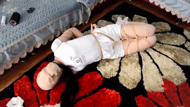 (七八分钟后,表姐拿绳子将表妹上身五花大绑起来,表妹的双腿与脚踝也被并拢牢牢捆绑结实)