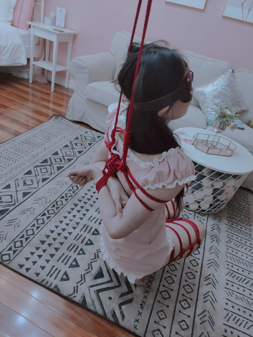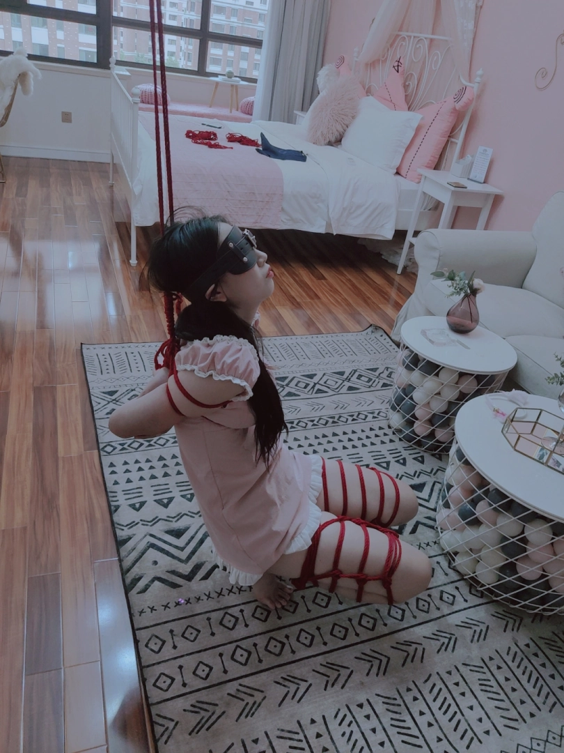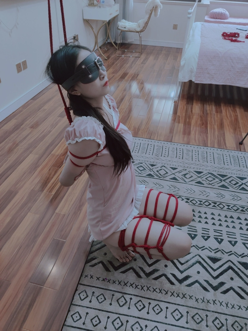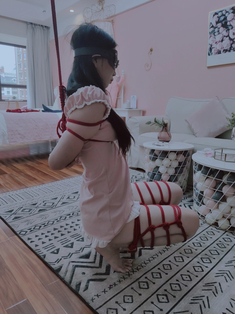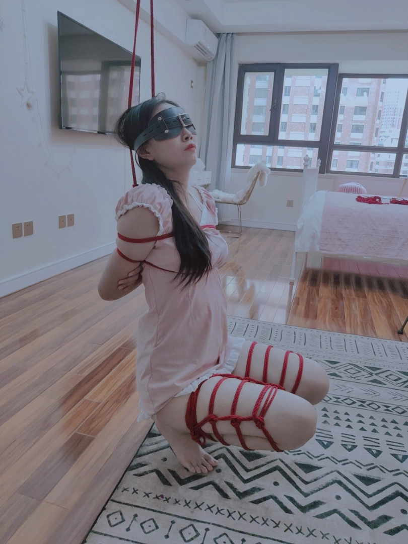 把长腿少女的双腿折叠捆绑,让少女坐不下去也站不起来。然后吊高她的双臂,让少女只能在两种痛苦中作出选择:要么踮起脚尖,让脚尖承受身体的全部体重以此减缓胳膊的压力,要么选择放下脚丫,让胳膊被狠狠吊起...