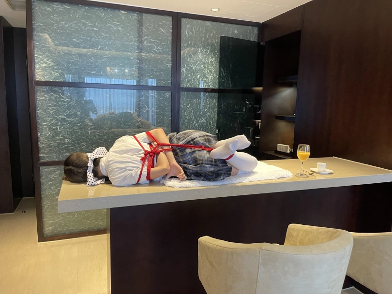 可怜的小茶茶就这样被驷马捆绑放置在吧台桌面上,周围人审视的目光让她浑身不自在,羞耻感让茶茶不断的扭动着身体。男人时不时的抚摸让她不安感越来越强,哪怕放置时也下意识害羞的扭动着自己的娇躯。小萝莉可爱的娇躯被无情的拘束起来,大肆展示着。少女不知道的是,客人们马上就要到了....