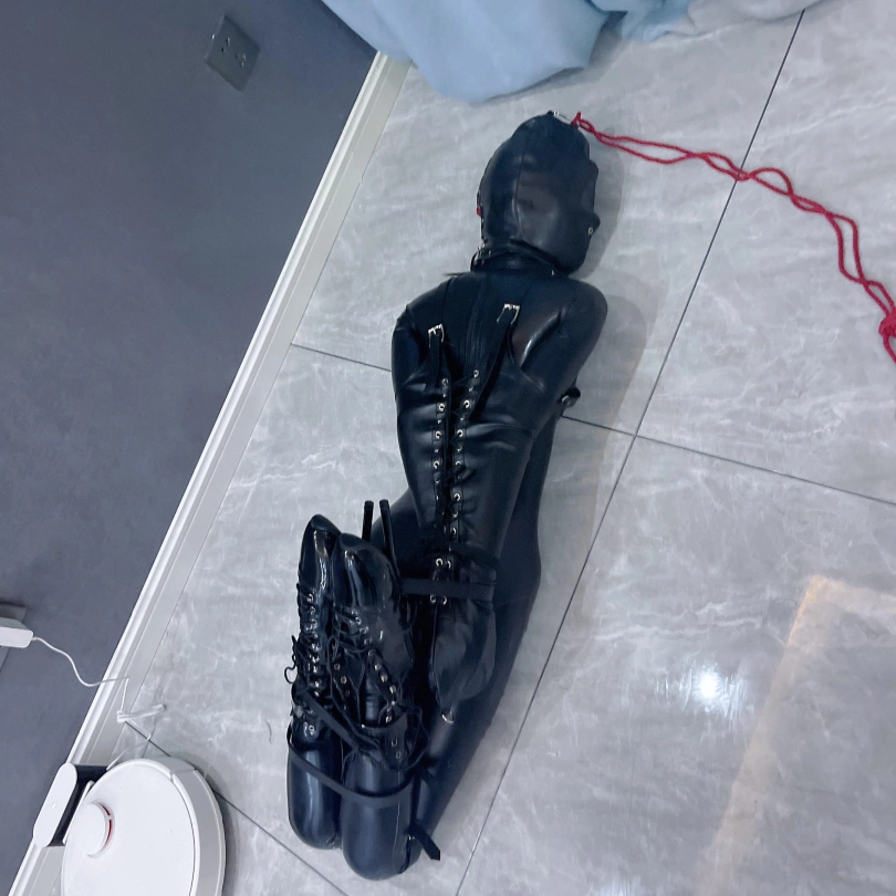 1.此时的茶茶已经被拘束成一个乳胶肉块、动弹不得,别说站起来了,连挣扎都别想。给茶茶设立解脱条件:旋转180度掉头成功或自己解开拘束,失败则惩罚。