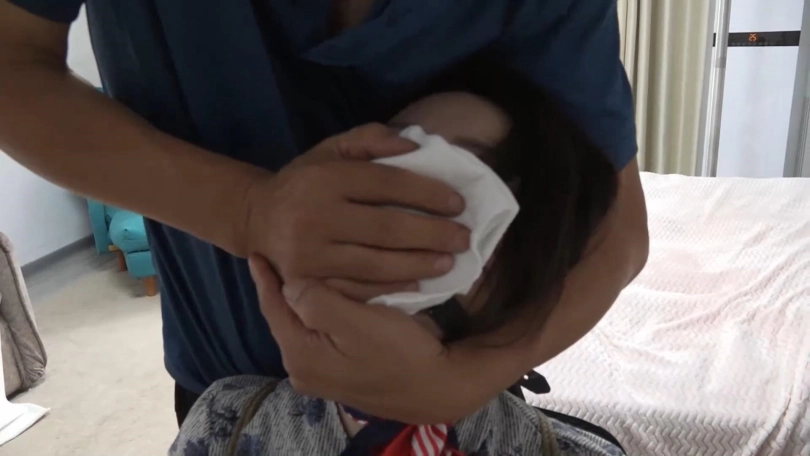 醒来就被绑在坐椅上,嘴巴被透明胶带封住了,腿没有被绑。挣扎了几分钟。