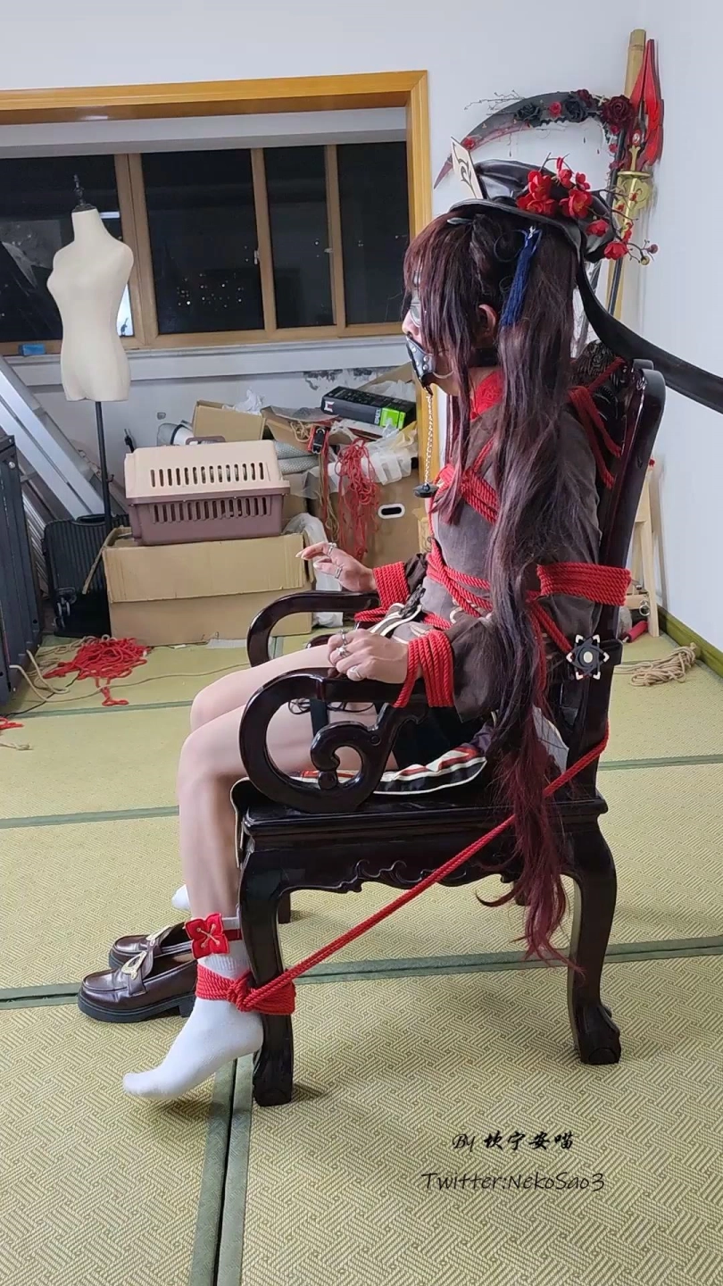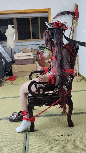 [往生堂的堂主胡桃被结结实实捆在了椅子上,眼睛蒙上了眼罩,嘴巴也戴上了强制开口的开口枷,[X_X]被奇怪的震动玩具填满,大腿内侧和脚底还被贴上了冰凉的电击贴片……接下来会发生什么呢?]