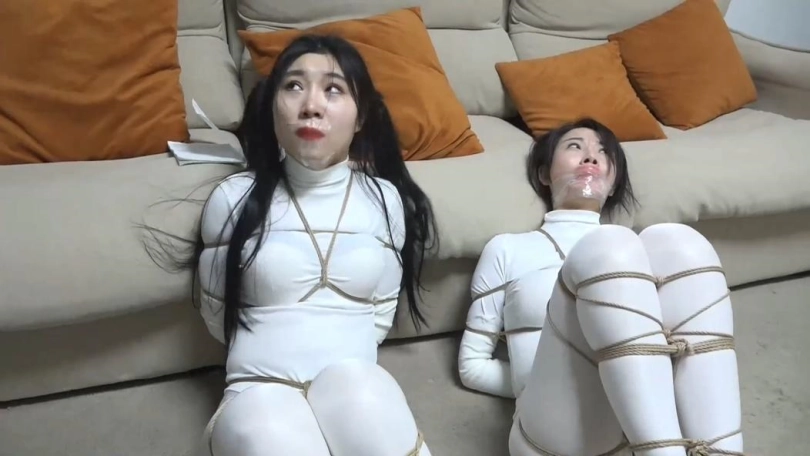 两个白丝美女上次被人肆意玩弄,最后被超密集捆绑,2个性感的白丝人棍无力蠕动挣扎,手部还被绷带包裹,2个美女到底能不能逃出生天?