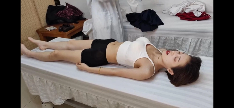 好色女医生摆弄被送过来的昏迷jk美女,翻眼皮摆弄身体换衣服。