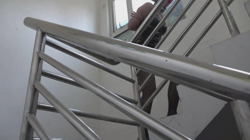 【逍遥】《逃脱失败之后》上集,一位被捆绑堵嘴的少女,艰难的走在楼梯间中。