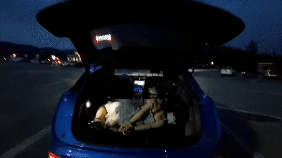 从湖南到重庆,600公里的路程,出发的时候找了个服务区,就在服务区被捆绑了起来,然后丢进了后备箱,可怜的是嘴巴被堵的严严实实,挣扎的活动空间太小了,车子颠簸的时候是真的难受,最可恨的是他还敢跑去加油站加油的时候被另一辆车的车主发现了,然后迅速离开,尴尬至极,熬过了最痛苦的路程好不容易到了车库,已经是大半夜了,四处张望没有人,于是就地开始口舌训练,和实战演习。