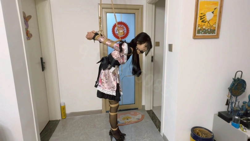 黑丝配和服,15厘米超高跟,极限欧式后手吊缚,塞满[X_X]蛋蛋,棒子固定,开始强高,失去平衡一直痛苦的转圈,有点惨,这个动作的后入是无法言语的,后手紧缚吊起的强制口舌也是绝绝子,细节过于暴力