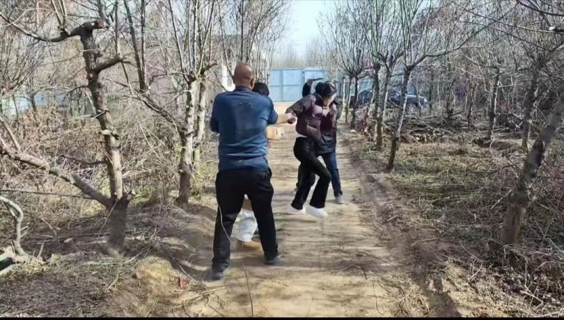 两名歹徒盯梢这两名大学生,经过一段时间盯梢,终于有机会在一个小树林两名堵住了两名大学生,把她们挟持到了荒废的院子两名进行折磨。