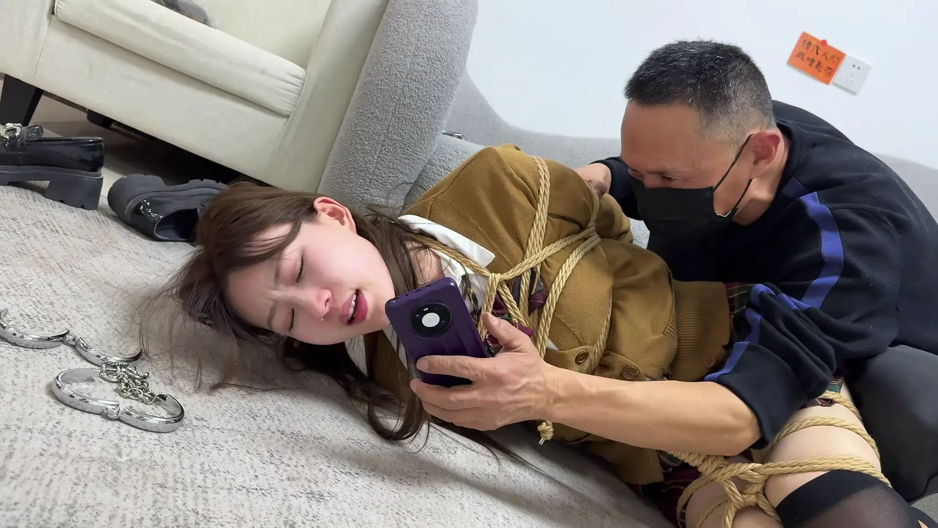 气急败坏得林长官拿出手机,播放一段视频给青雅看(内容是青雅的妹妹也遭受酷刑,这视频不用拍,只拍摄林长官给青雅看手机视频的频段即可)。
