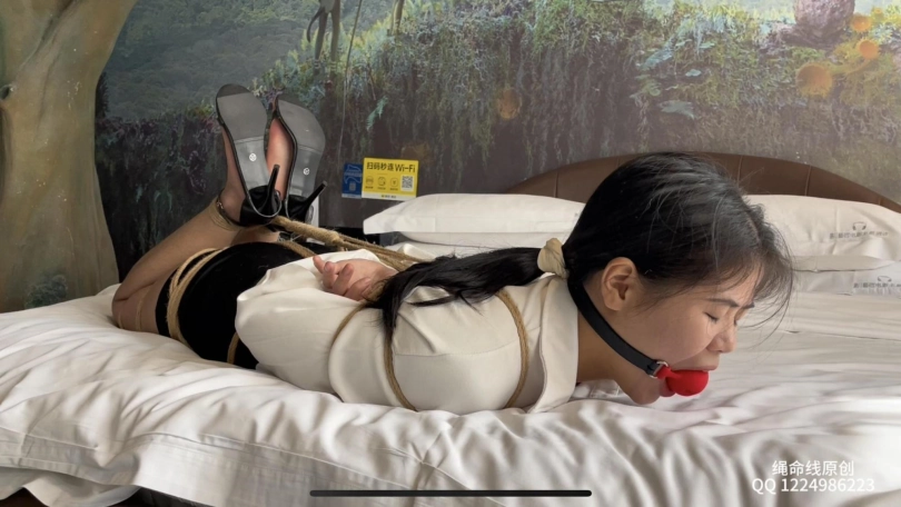 本来想着给安然绑个日式股绳吊缚的,后面发现好像技术不太够,只能换成了驷马口球和简单挠痒,还别说安然穿上职业装被一字带高跟鞋还是挺好看的。
