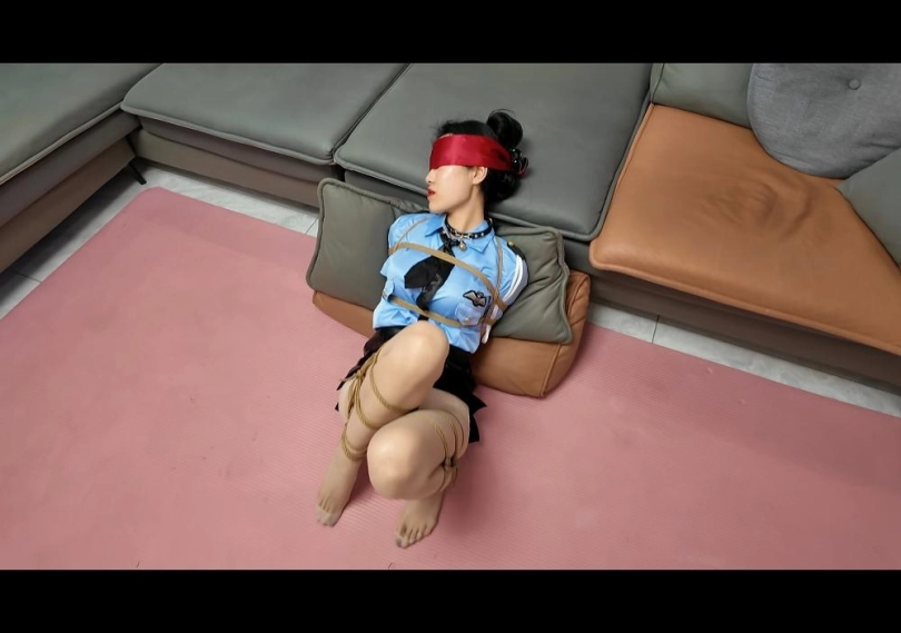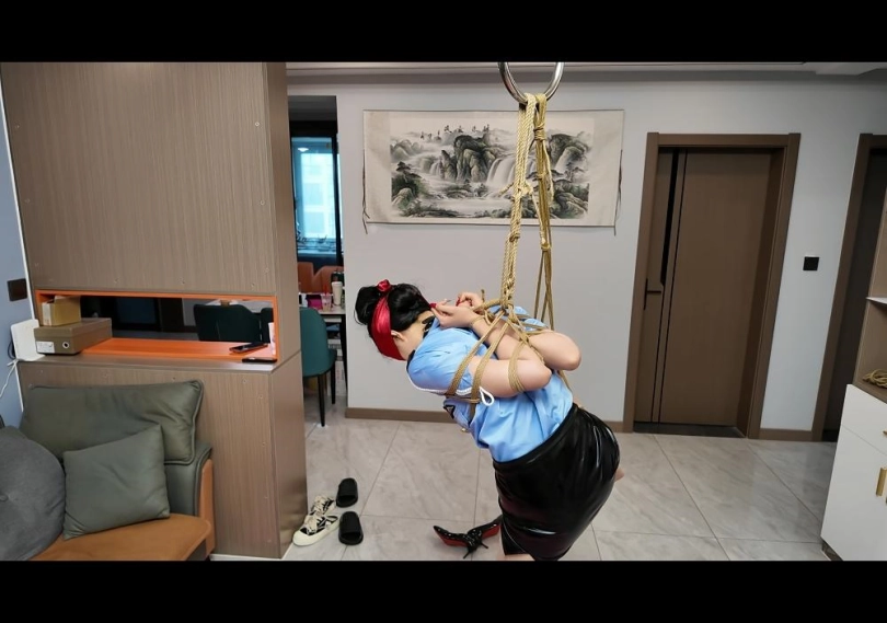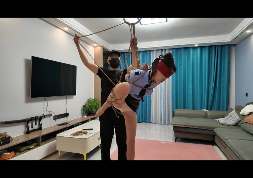 客户把雅倩吊到客厅,挠脚心,挠痒,觉得不过瘾,就放下来,m腿绑好,拿出了棒棒,不顾雅倩的求饶,用力的动,惹得雅倩叫声不断,最后摊软在地