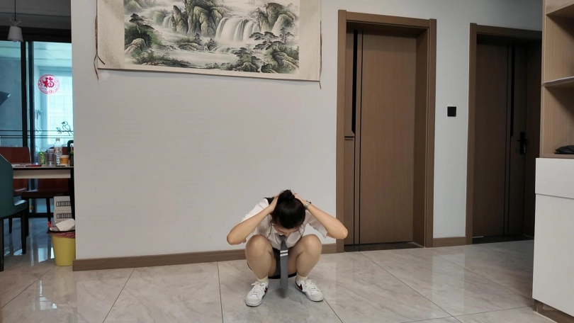 佳佳第一次接体罚类的,一共完成了280个深蹲,要求深蹲必须屁股碰着脚,还有100个蛙跳,分组做,有特殊要求,惩罚就是鞭打和滴蜡,滴蜡滴的佳佳惨不忍睹,滴完还要用皮鞭抽打,佳佳太敬业了,高标准的完成了体罚和惩罚,第二天腿疼去医院检查发现大腿肌肉拉伤,足足休息了一个多星期才能上班