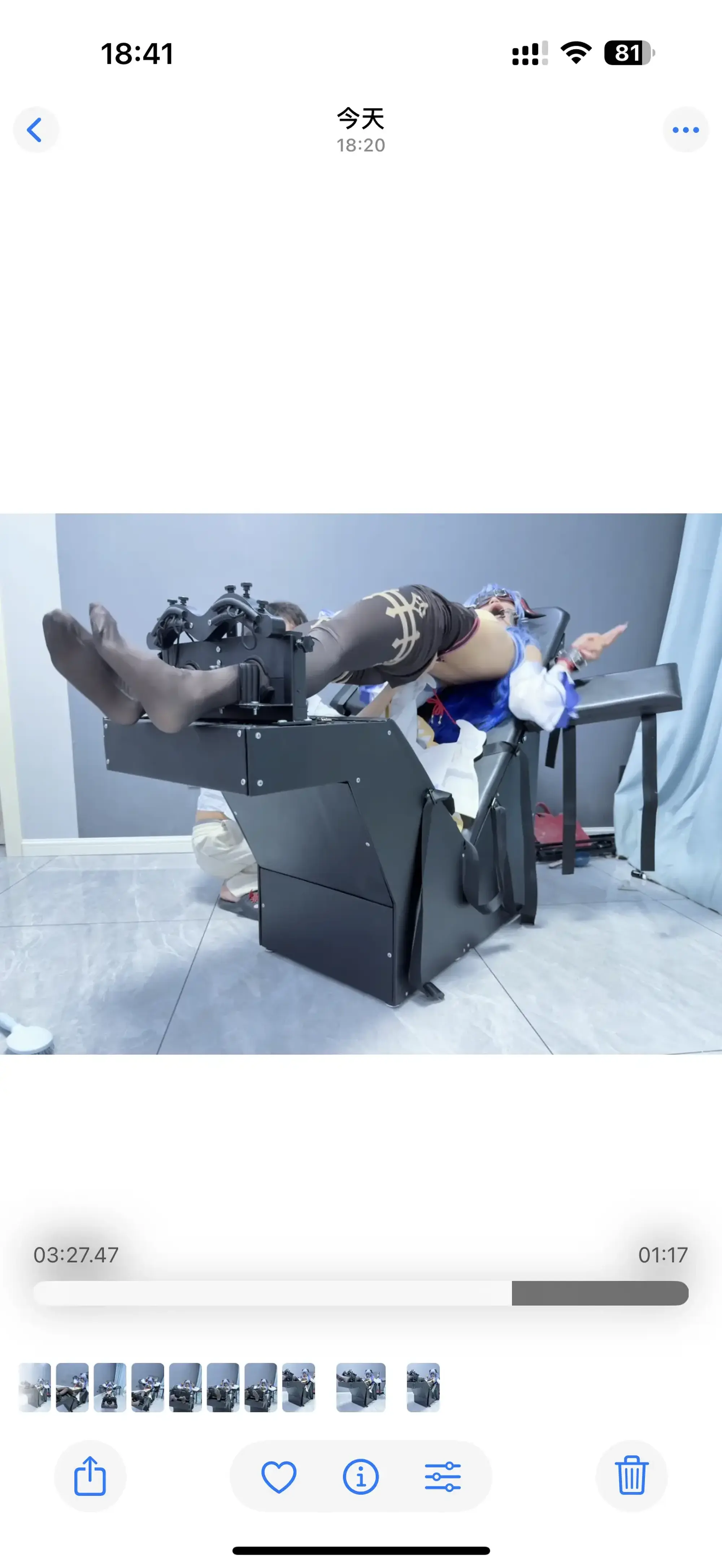 不得不说这一部拍的太爽了,越来越上头,越来越激烈!到后面地狱痒堕阶段多次笑到干呕,但是即使痒到干呕我也没有停下!挠到衣服都撕破了露出胸垫!而且糖糖也给力,居然怕痒到用惊人的核心弹跳起来了,整个身体后仰飞在刑床上方,手脚却依然被固定在原处,腰腹挺的高高的,还戴着口枷拼命挣扎...妈呀,太可爱啦!