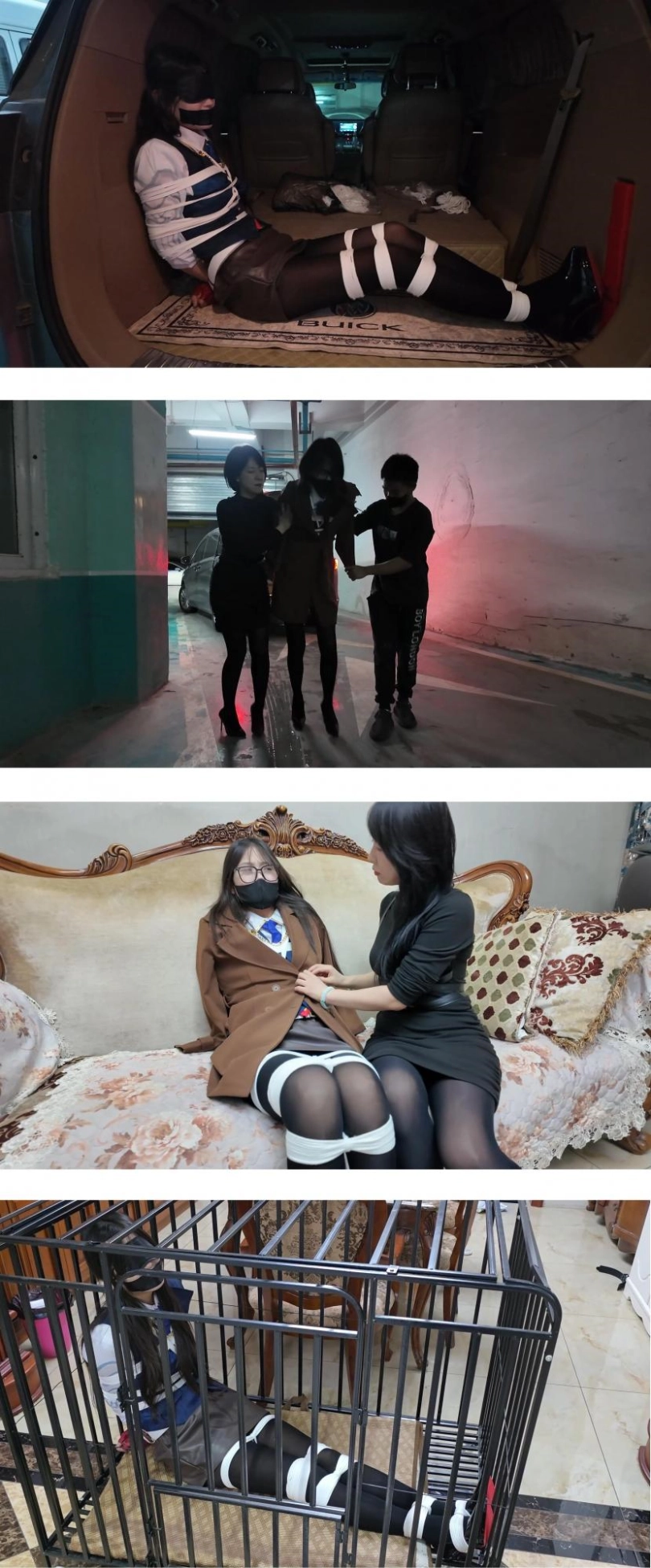 玩完雨琦后,米粒粗暴的把雨琦拖进笼子里说:这是专门为你定制的,花了我不少钱呢,你就好好呆着吧。说完就走了。雨琦眼睛被蒙住了,吓得不停挣扎