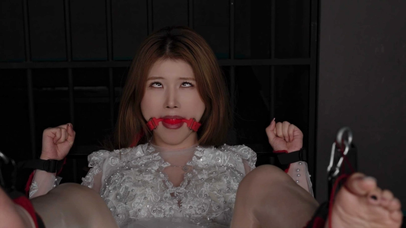 最后给她带上了口球,还用鞭子抽她脚底,极度反差。