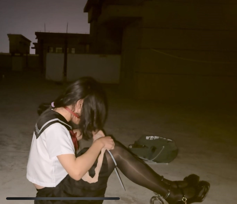 黑色马油丝袜也被弄破了,高跟鞋也有点挤脚,定时锁定了十五分钟,可我感觉像几个小时那么漫长。定时锁自缚,而且还是没有一点容错的手铐脚铐自缚,真的铐上之后非常无助,除非时间到了,否则没有任何退路可言,紧张、刺激感与露天自缚的羞耻感伴随着下意识对锁可能坏掉的担心一同到来。