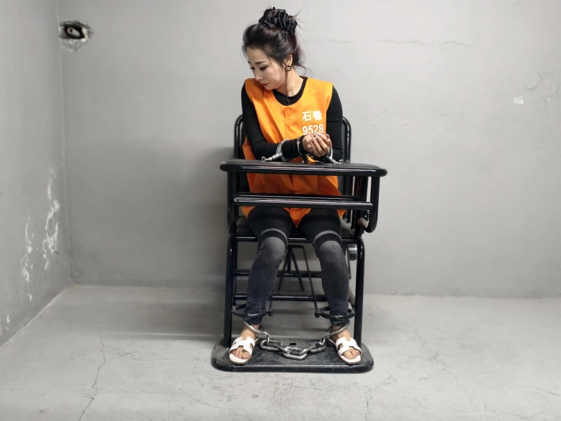 › 【忘忧社】一名女犯人被抓获,进行例行搜身检查后被带上手铐。审问时,她自称江红。面对审问,她坚称自己没有什么可说的,态度不配合。JC使用暴力手段对其进行审讯,驷马,吊起来导致其痛苦不堪并最终服软。