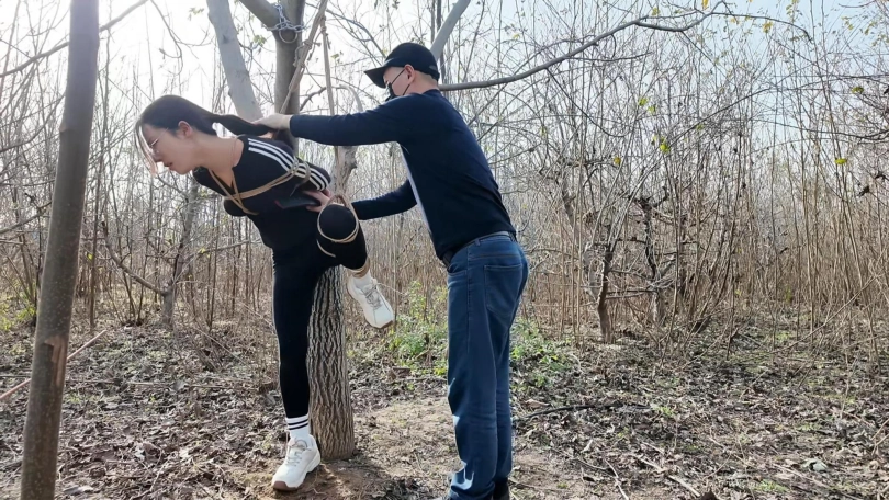 晨跑的十一一不留神跑到了一片小树林,结果被人绑架,绑好在地上被鞭子狂抽,又被吊到树上打屁股,这还不够,又绑到树桩上,用棒棒玩弄,一直到完全失禁....大量的鸟液喷涌而出