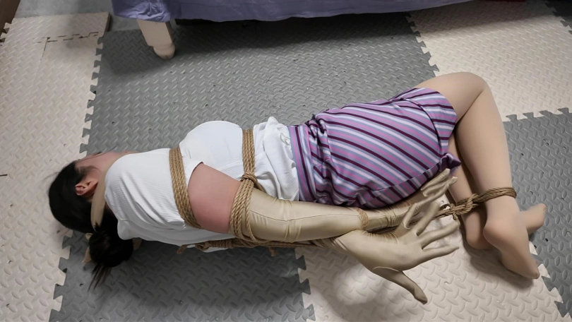 累了一天的空姐回到家直接来到卧室,躺下就睡着了,这个时候家里进来一名神秘男子,打开卧室房门,空姐猛的惊醒,一把被毛巾捂住口鼻,不一会就被捂晕.....驷马捆绑,丝袜堵嘴,剧烈挣扎,从床上到地上,胶带堵嘴,胶带捆绑,各种元素拉满