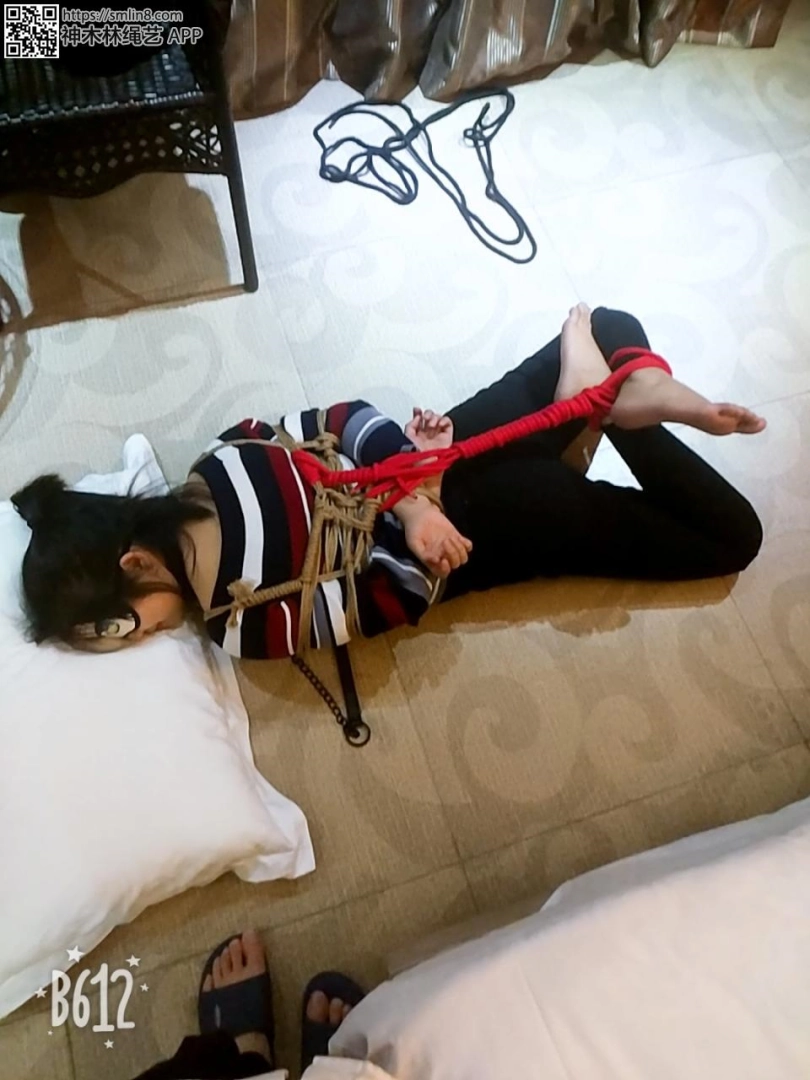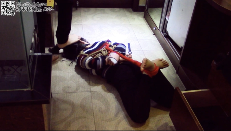 在把妹子的双腿交叉后绑了个驷马,随着绳子的收紧,女孩昔日用来移动的小脚在绳子的限制下反而成了反弓在背后的负担,只能像蜗牛一样背着壳艰难的爬行....