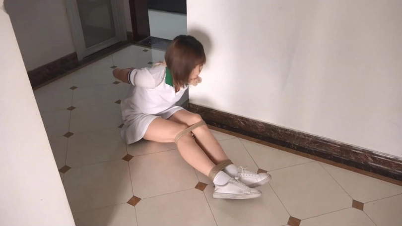 劫匪把阿琳捆得更紧,脱掉阿琳脚上的鞋子和穿的一双白色棉袜,取下阿琳嘴里肉色连裤丝袜,把这双原味棉袜强行塞入阿琳口中,塞得阿琳直恶心,翻白眼。