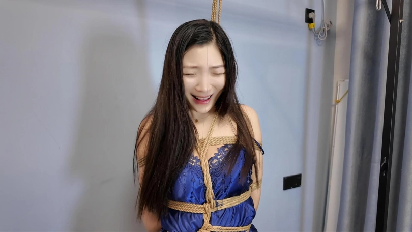 购买了一个新工具,正好佳佳到了,让佳佳换衣服试一次,换上一件蓝色睡裙,固定到架子上,开启快乐新模式,最后爽到飞起